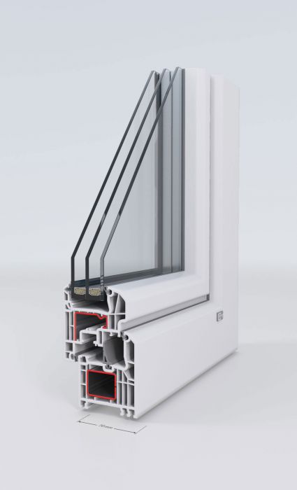 Kunststoff-Fenster bestehen aus Mehrkammer-Hohlprofilen, die mit einer Stahlarmierung verstärkt werden.